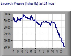 Barometer Steady Pressure Change: -0.01 "/hr. Temperature Change: 0.9°F/hr Rainfall Rate: 0.00 "/hr. |